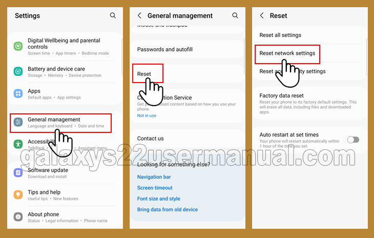 How to Fix Samsung Galaxy S22 Slow Internet Connection Issue, tap on “Settings“. After that, choose “General Management“, tap on “Reset” and then select “Reset Network Settings.”
