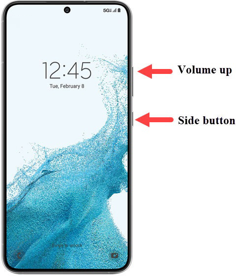 The way to hard reset your Samsung Galaxy S22 is straightforward. Find the buttons on the right side of the device. It consists of power and volume buttons. Press the power and volume down buttons at once for a few seconds.