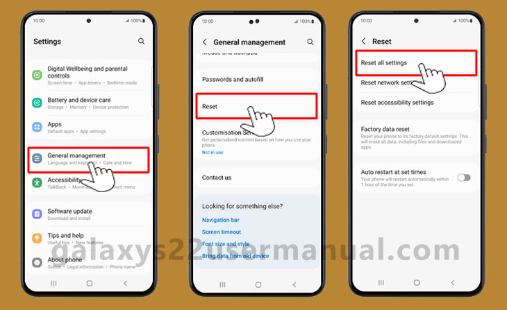For that reason, you have to reset your phone to restore its performance. However, factory resetting or wipe cache partition your phone would delete your saved files and data. So, we propose that you perform a configuration reset first. Unlike factory reset, setting configuration reset won’t delete any data on your phone. Here’s the easy way to reset your Galaxy S22 settings.