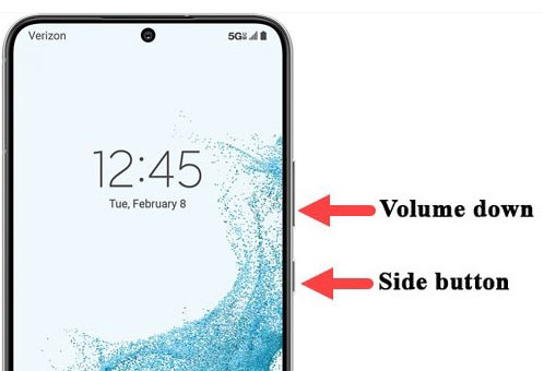 When you want to take a screenshot, just hold the Volume down key and the Power key (Side key) simultaneously. The screen will flash, indicating that a screenshot was captured.